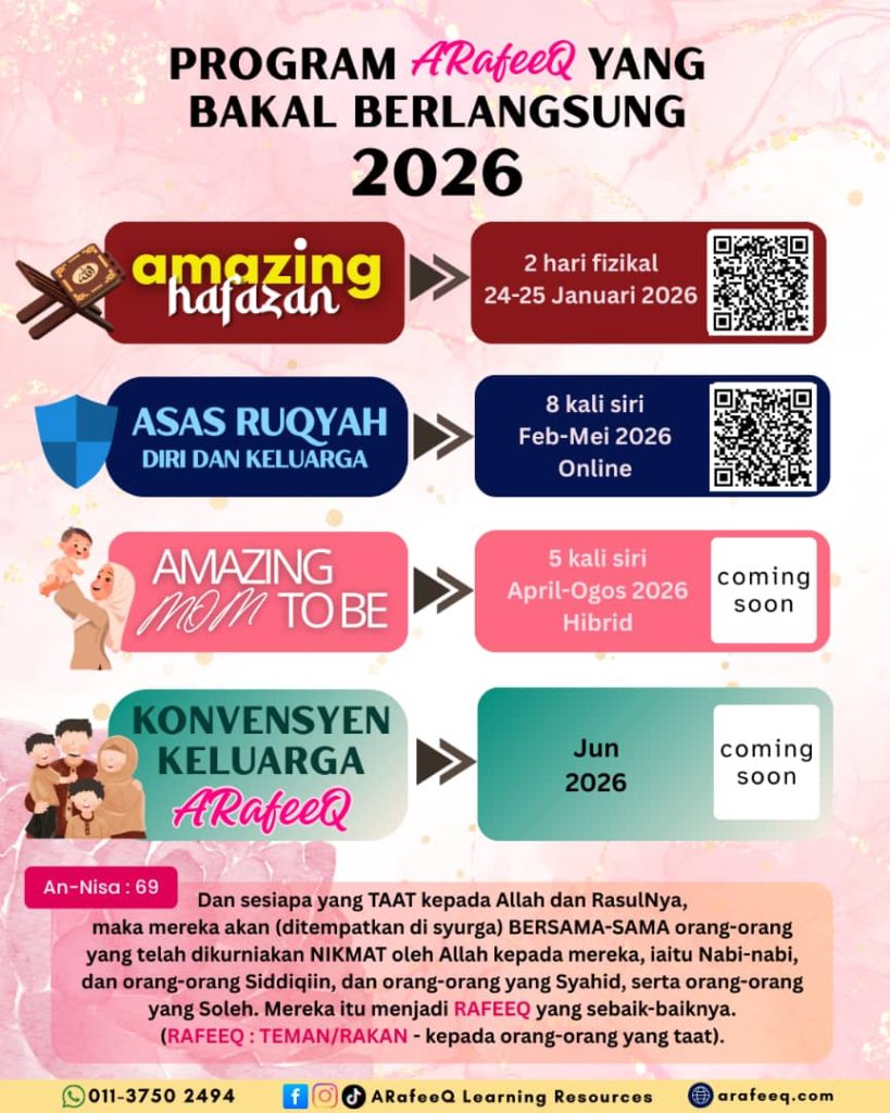 Perjalanan Arafeeq tidak berhenti pada apa yang telah dilalui. Dengan izin Allah, amanah ini diteruskan melalui beberapa program yang dirancang untuk tahun 2026 — sebagai ruang pembelajaran, pengukuhan keluarga dan pembangunan insan.